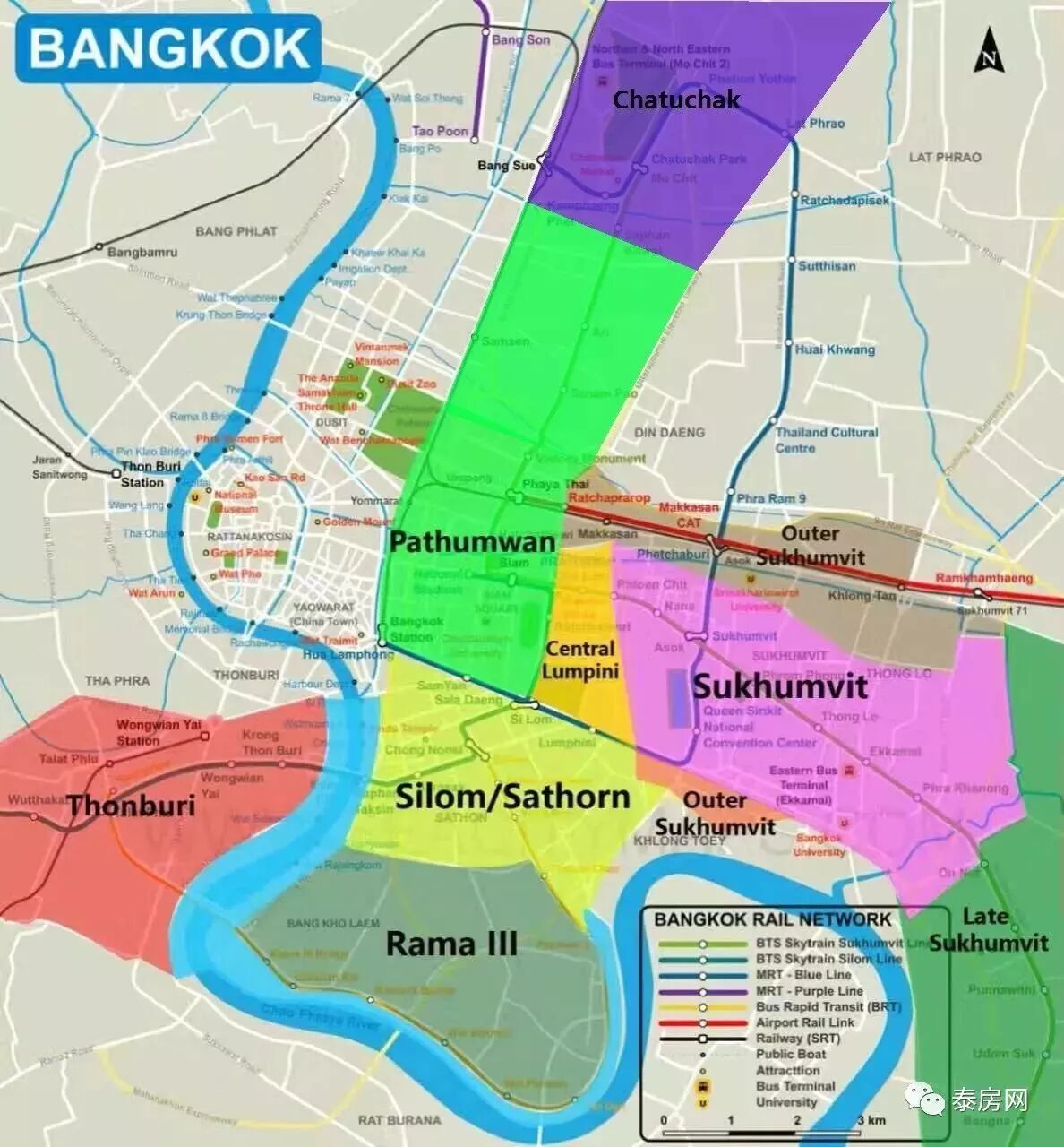 按照此前公佈的規劃,整個曼谷連接主城Siam核心區、Sukhumvit居住區、Sathorn老牌CBD、Rama 9再加上今日介紹未來Bangsue城市CBD圍繞,以siam為中心,幾大區域形成“30”分鐘生活圈,北直往廊曼機場與北部汽車站、東至sukhumvit大道延伸、西至紫色線、南穿sathorn CBD,基本將整個曼谷核心區域全聯繫起來。