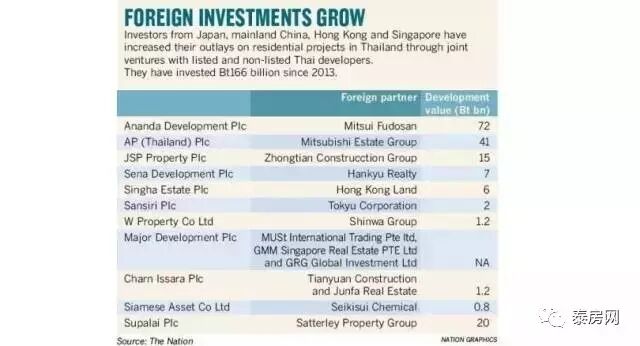 包括中國香港、新加坡,中國大陸在內的其他地區的公司也擴大了對泰國房地產市場的投資。最主要的是開發靠近公共交通系統附近的公寓項目,因為在那裡他們看到了強勁市場需求。