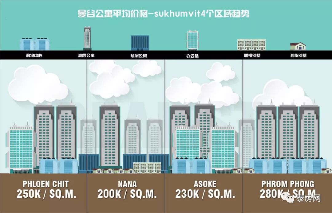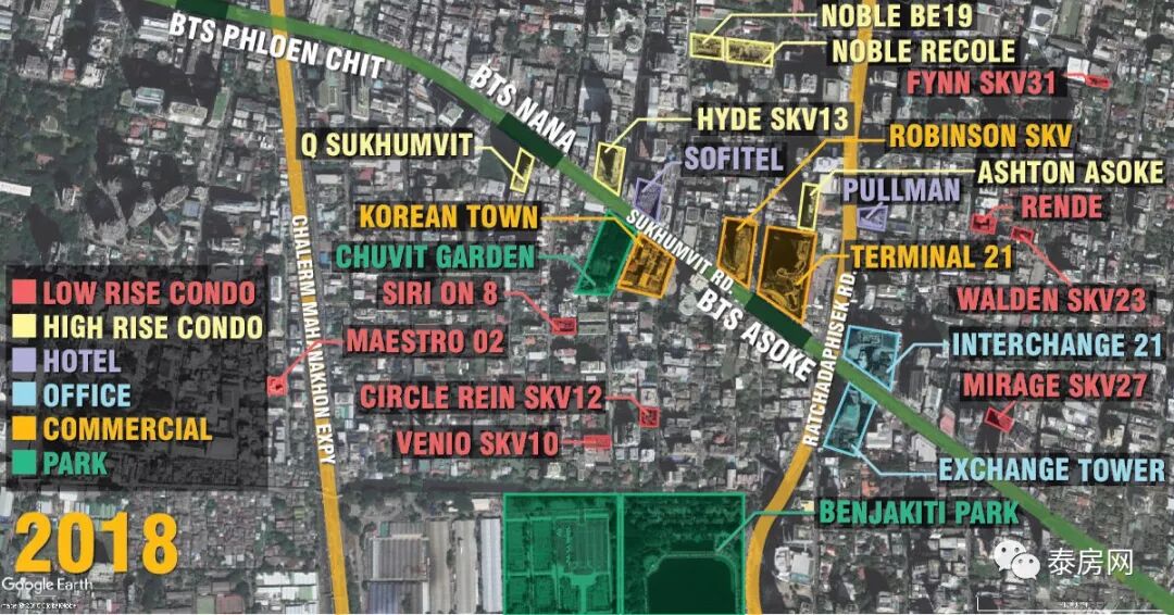到了2018年第一季度,素坤逸路在過去五年內發生了巨大變化,彷彿“泰國房價很貴 ”,這個心理陰影,環繞在很多人頭頂,從2015年開始到至今已經三年了。因為隨著泰國旅遊業的興旺,帶動了整個房產以及酒店業的市場,使得素坤逸(sukhumvit)地區的公寓開發量與日俱增,而Asok區域的開發項目已經飽和。在該片區無論哪位置,隨處可見的都是拔地而起的高樓,而進到巷子深處,隨處可看到低密度的公寓,甚至還有別墅區、酒店,將該區域的土地完完整整使用完畢。