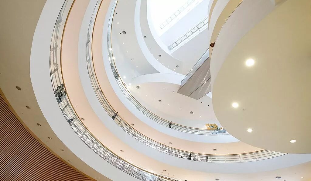 ▲ 以白色彎曲牆面和螺旋式走道為內部主體。