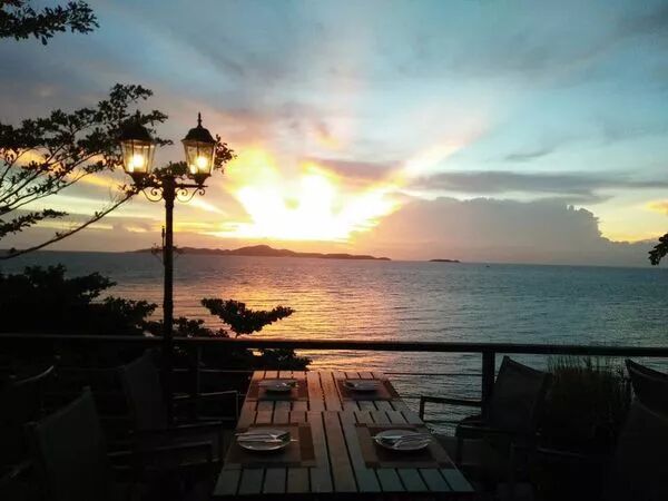 餐廳戶外區是一個寬敞的大平台,可以遠眺日落餘暉與晚霞之美。也可俯瞰一個水天一色、遼闊無邊的壯麗海景