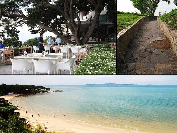 在照片中的大樹旁有條小徑可以通往海邊。這邊的沙灘及海水,比起芭達雅其他地方的海灘都要更乾淨、美麗許多,是非常適合散步玩水的地方。