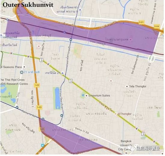 Outer Sukhumvit主要是指Petchaburi路及其以北、Rama IV路以南的小範圍片區。