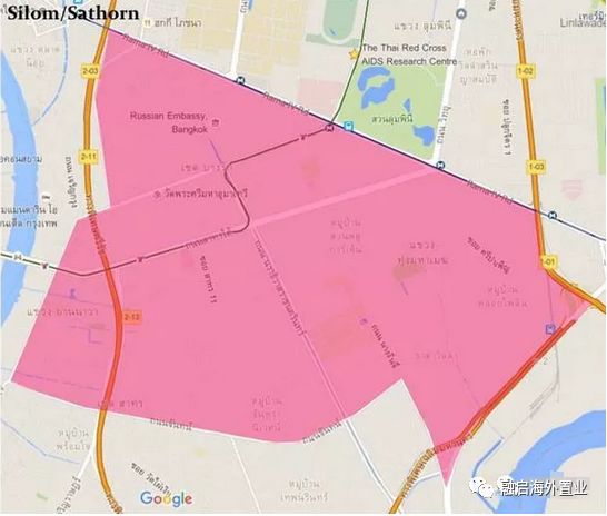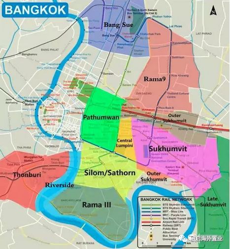 上圖是曼谷市中心( Downtown)的幾大傳統住宅地段: