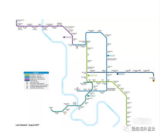 曼谷的軌道交通現有 2條輕軌(Bangkok Mass Transit System,簡稱BTS)+2條地鐵Mass Rapit Transit Authority of Thailand,簡稱MRT)+1條機場鐵路線。