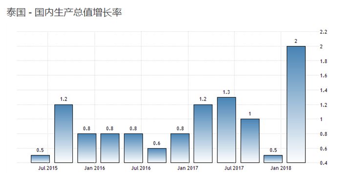 不過,最讓人眼前一亮的是泰國的GDP季度增速——達到2% ,表現非常出色,創下了泰國經濟5年來的新高。