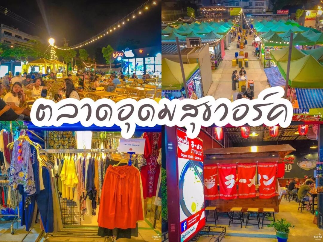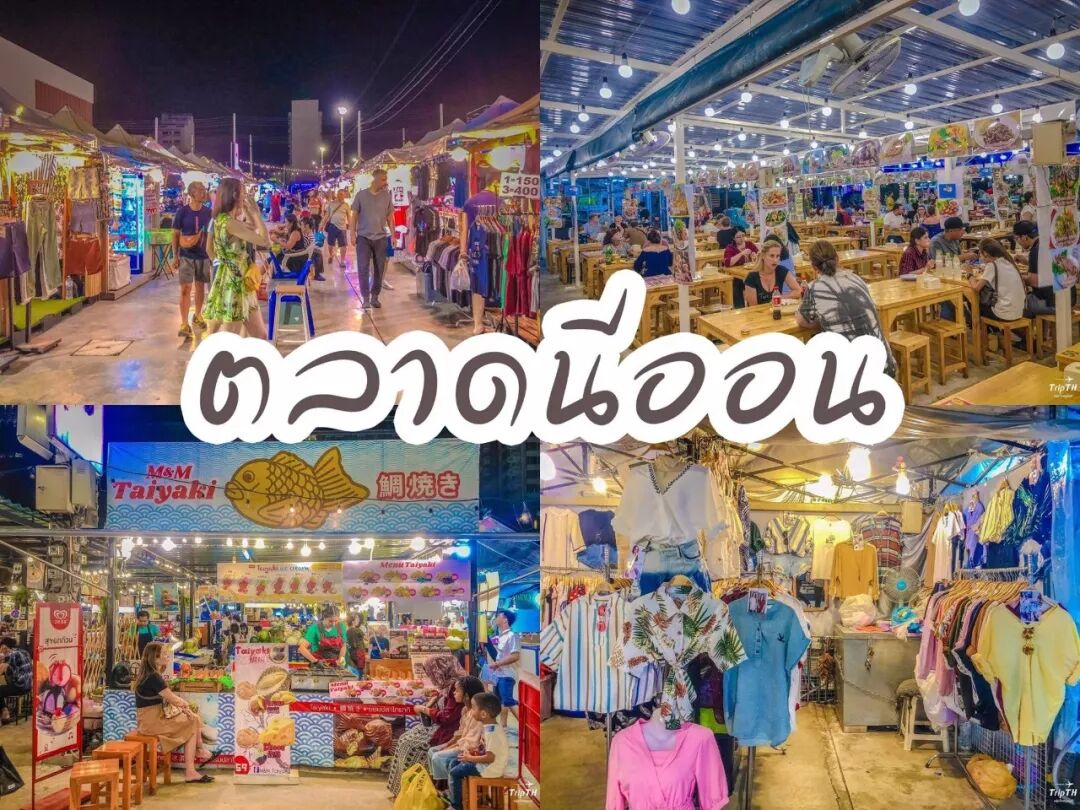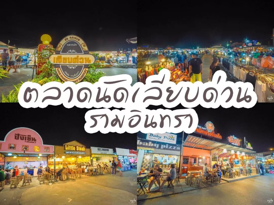這夜市很特別在曼谷一條公路Ramintra Road 旁邊本土泰國人為主遊客挺小非常大主要分為三個區域小食區、二手市場區服飾生活用品古懂。。