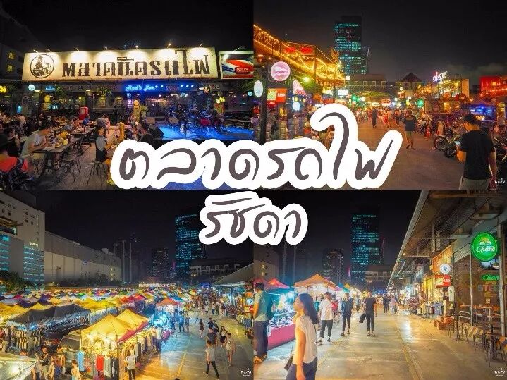 拉差達火車夜市在Esplanade Shopping Mall後方的大型停車場空地,夜市主要分為四大區,有美食街、服飾小物、二手市集(文創市集)、酒吧夜店,也有各種樂團、街頭藝人駐唱,越晚越熱鬧